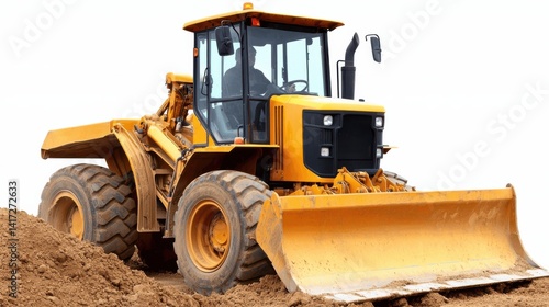 Grader machine operator leveling ground in construction site heavy machinery close-up professional environment