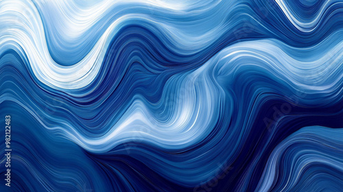 Gradient from navy to royal blue, with bold, sweeping wavy lines in white creating a dramatic, abstract background with depth and movement.