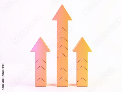 Gradient Orange Chevron Arrows Triad Ascending Upward Isolated on White Background Ultra-Detailed Cinematic Image