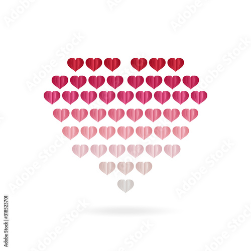 gradient pink ombre paper cut heart shaped isolated on white background vector