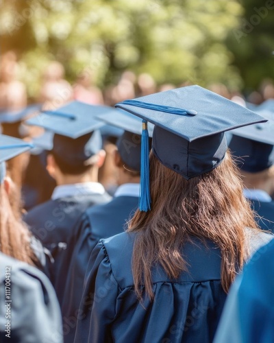Graduates in caps and gowns at a commencement ceremony.
