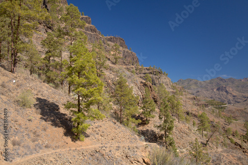 Gran Canaria, landscape of the southern part of the island along Barranco de Arguineguín steep and deep ravine