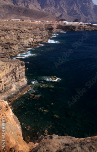 Gran Canaria, steep eroded coast line of Agaete municipality, path to Playa del Juncal beach