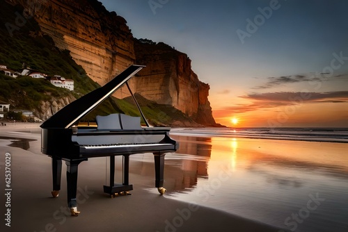 grand piano on the beach generated by AI tool
