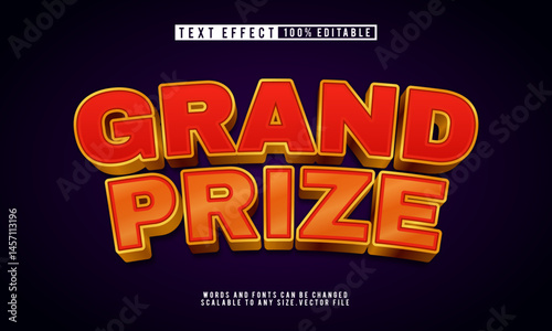 Grand prize 3D editable text effect with bold, vibrant style perfect for promotions.