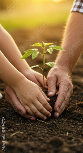 Grandparent and Child Planting a Sapling Together: A Symbol of Growth and Legacy