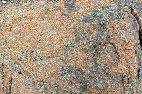 Granite rock with moss background. Background of stone surface. Textured processing hard stone.