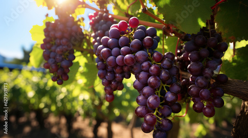 Grape tree with fresh grapes. Ripe grapes in Orchard ready for harvesting,