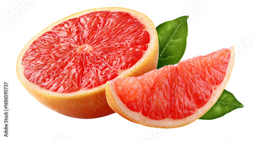 grapefruit slice with green leaf isolated on white