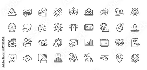 Graph chart, International delivery and Safe box line icons pack. AI, Question and Answer, Map pin icons. Yummy smile, Stop shopping, Cloud computing web icon. Vector