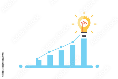 Graph with an ascending trend and light bulb representing growth, innovation, and success in business or finance.