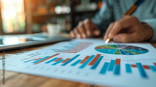 Graph with infographic design, icons, and explanatory text, business progress, stock photo, ample copy space
