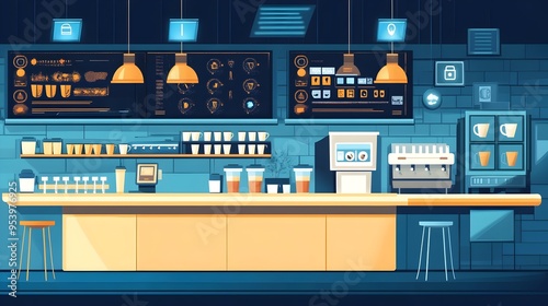 Graphic Depicting a Futuristic Smart Caf Leveraging IoT Technology for Automated Order Processing Optimized Workflows and Enhanced Customer Experience