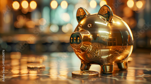 Graphic image of a coin being saved into a piggy bank perfect for financial planning savings strategies and economic education visuals