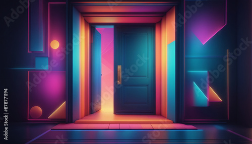 Graphic representation of an entrance door or passageway in neon colors in an illustrative style