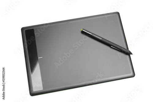 Graphic tablet with pen for illustrators and designers, isolated on white background