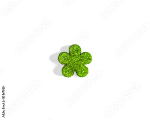 Grass asterisk punctuation mark from top angle with shadow on ground.