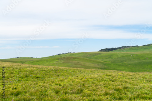 Grassland and mountains in a cloudy day. Photo in Kalajun grassland in Xinjiang, China.