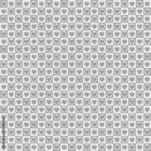 Gray checkered heart pattern with dots. Seamless vector