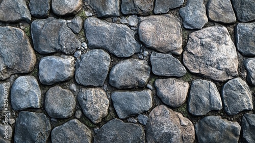 gray cobblestone wall or road background texture. Tileable grungy natural rock and stone shaped path or walkway repeat surface pattern. A high resolution construction backdrop