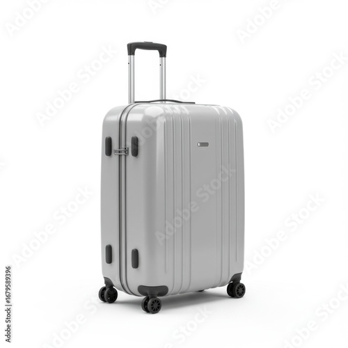 Gray Hardside Rolling Suitcase With Extended Handle Isolated On White Backdrop