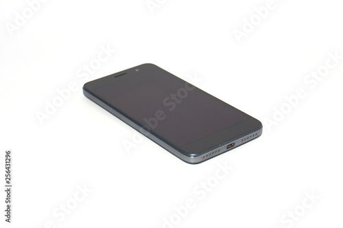 Gray smartphone on a white background with a place for text, side view