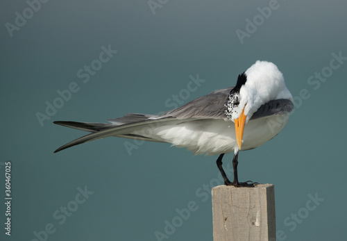 Greater Crested Tern cleaning its feather, Bahrain
