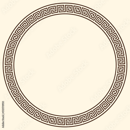 Greek key pattern, round frame. Decorative ancient meander, greece border ornament with repeated geometric motif. Vector EPS10.