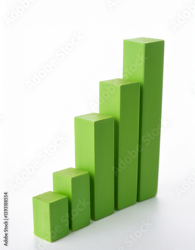 Green 3D bar graph isolated on white background. Growing business, success and improvement.