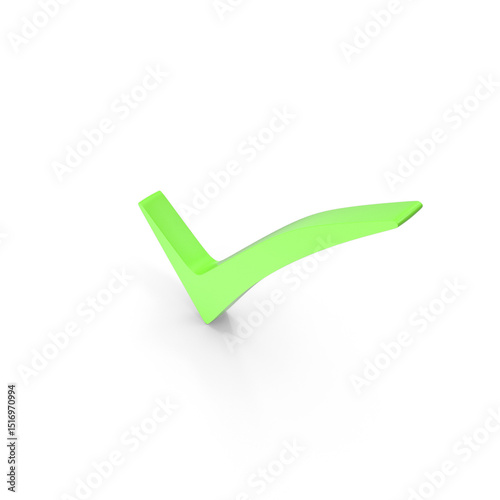 Green 3D Check Mark Symbol Isolated on Transparent Background