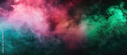 Green and pink steam billowing against a dark backdrop with ample copy space image.