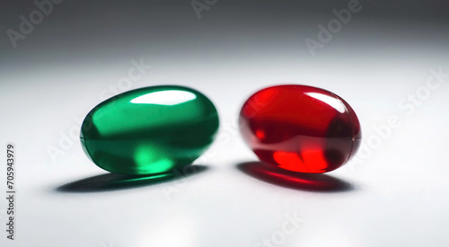 green and red pills capsules with medicine, concept of choice between real and imagine , generative AI