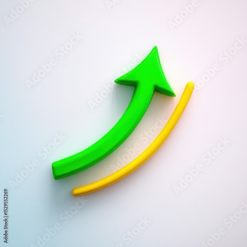 Green And Yellow 3D Arrow Pointing Upward On White Background