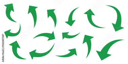 Green arrows set. Curved arrows. Arrow sign. Flat style icons. set of green curve arrow icon vectors. long arrow icon vector illustration.