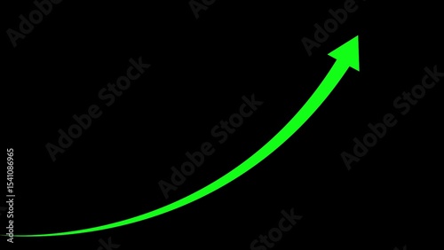 Green ascending arrow on black background representing growth progress and success in business marketing and financial contexts
