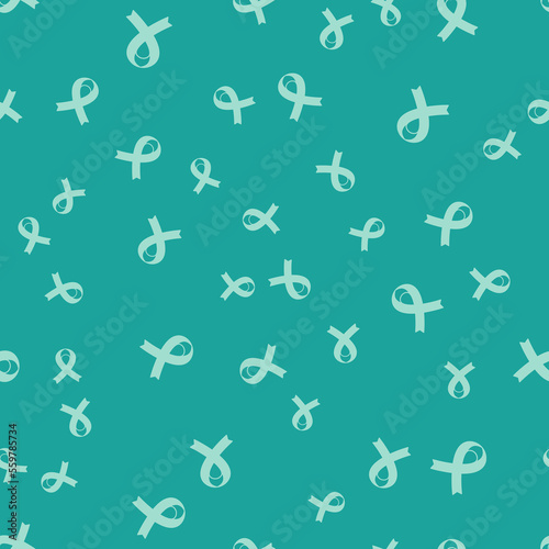 Green Awareness ribbon icon isolated seamless pattern on green background. Public awareness to disability, medical conditions and health. Vector