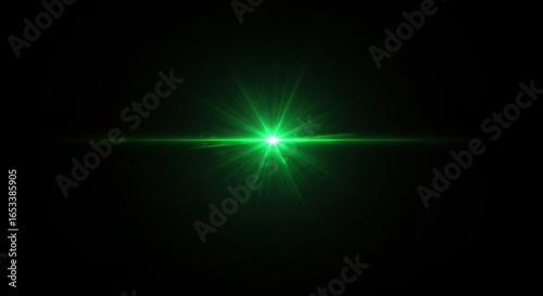 Green Beam of Light: A vibrant and striking green light beam shoots out in the abyss of black, a stark and compelling display of radiance and power.