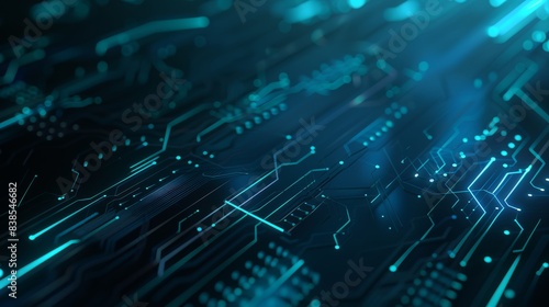 Green Black White abstract background with digital glowing lights and circuit board elements on a dark blue background, high quality 3D rendered illustration of an abstract futuristic technology