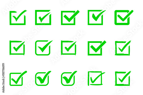 Green box tick mark check list icon set