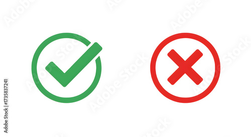 Green check mark and red cross mark icon, vector illustration symbolizing correct and incorrect choices, approval and rejection, validation, decision-making, error, success, failure, and user interfac