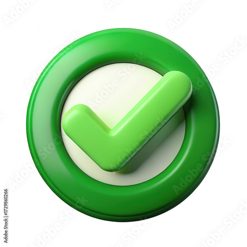 Green check mark symbol in circle for success approval confirmation completion isolated on transparent background