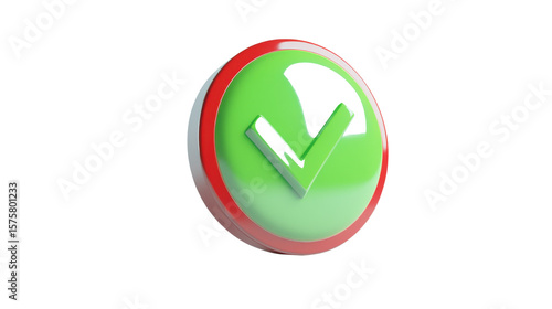 Green Checkmark Symbol on Round Button with Glossy on white background