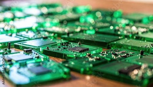 Green Circuit Boards Technology with Electronics, Data, and Abstract Background.