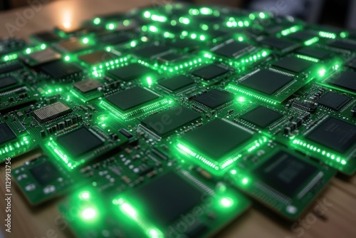 Green Circuit Boards Under Soft Lighting