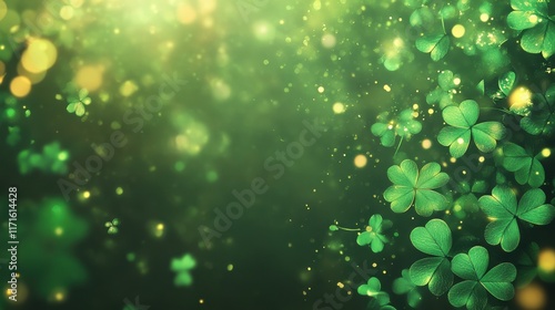 Green clover leaf isolated on blur background. with leaved shamrocks. St. Patrick's day holiday symbol. Lucky green clover and nature background.