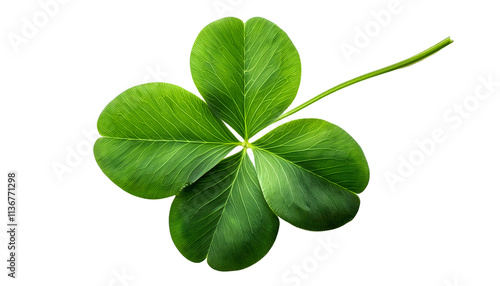 Green clover leaf symbolizing luck and positivity, isolated on a clean white backdrop. Perfect for concepts of good fortune, St. Patrick's Day, and natural beauty. PNG white transparent background