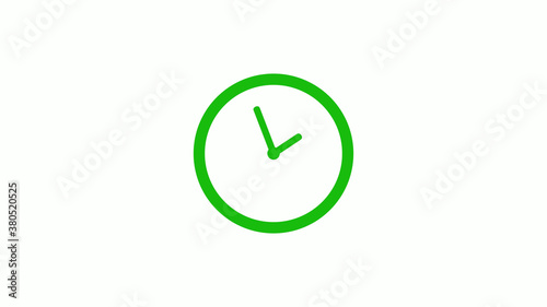 Green color circle 12 hours clock icon on white background,clock icon without trick