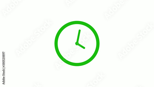 Green color circle 12 hours clock icon on white background,clock icon without trick