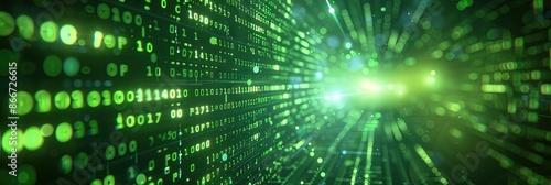 green digital binary data on computer screen background