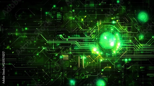 Green digital network data flow, glowing sphere, abstract technology background, for tech presentations